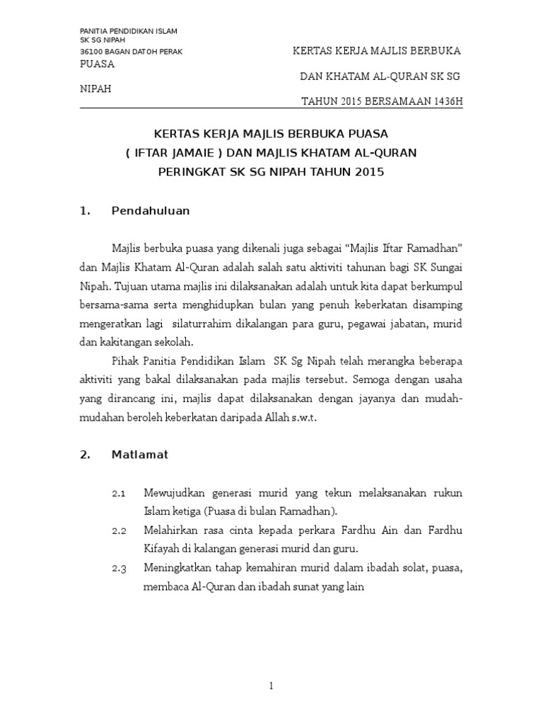Kertas Kerja Majlis Berbuka Puasa Pdf