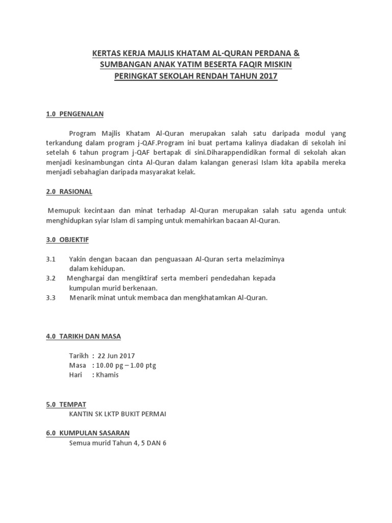 Kertas Kerja Majlis Khatam Al Quran Pdf