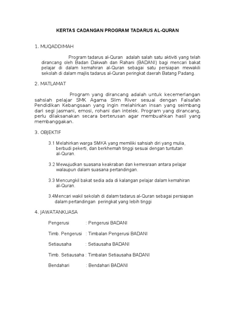 Kertas Kerja Majlis Tadarus Al Quran Pdf